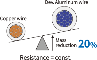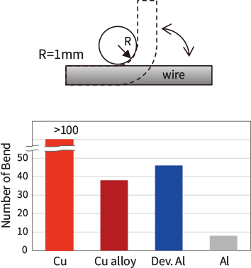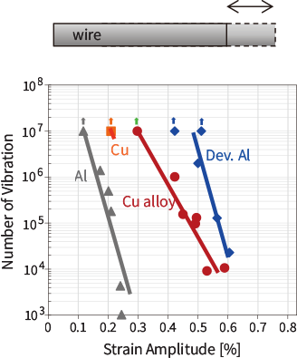 Utilizing our proprietary metal technology, this is a new aluminum alloy wire with fine crystalline grains. It achieves more than twice the strength of pure aluminum and enhances vibration resistance and repeated bending resistance by over 100 times, while maintaining formability for bending and twisting processes.