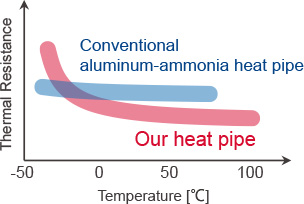 In space, heat dissipation through air convection is not possible, making heat management using heat pipes effective. Based on many years of experience in ground infrastructure, Furukawa Electric is advancing the development of heat pipes for space applications.