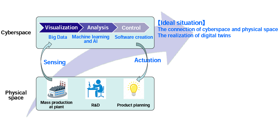 The digital technologies of AI and IoT are essential for realizing the creation of new businesses that solve social issues and the innovation in MONOZUKURI for the society. For example, high reliability and quality of products based on AI and IoT technologies are essential in order to use “unmanned, remote and automatic control” at ease.