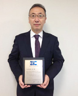 This award is based on the recognition of the contribution to “the technology development of the high-power and broadband erbium doped optical fiber amplifier”. Senior-fellow Ohgoshi has been working on technological development and commercialization of the optical fiber amplifier since the beginning of 1990, just after the erbium doped optical fiber amplification technologies were introduced. These technologies and products are widely applied to the domestic and foreign optical fiber communication systems, and contributed to the institute and the society.