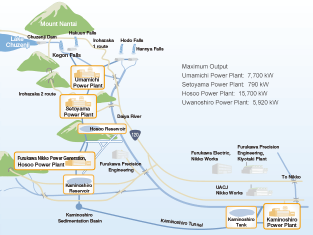 In addition to supplying power to Nikko Power Generation Nikko Works, these upgrades will allow the Uwanoshiro Power Plant to begin supplying power under the FIT system, by separating from the Furukawa electric supply system and connecting independently with the TEPCO electric supply system.