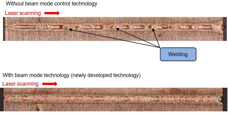 (note 1)Spattering: Microparticles that scatter from fused metal when laser welding. They can cause welding defects and have a negative impact on quality.