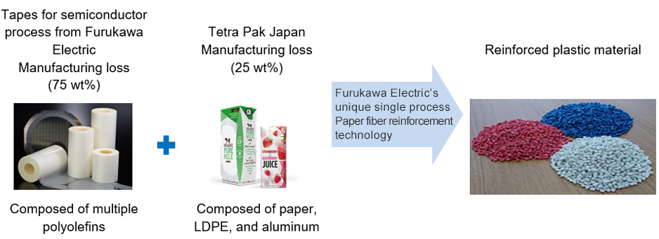 The original plastic from manufacturing losses of Furukawa Electric’s tapes for semiconductor process is strengthened to double its flexural modulus.