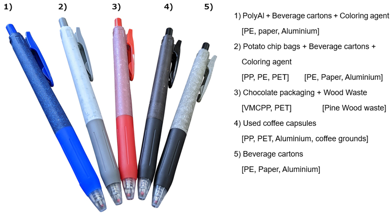We have also succeeded in creating prototypes of ballpoint pens(note 1) using other food packaging plastics.