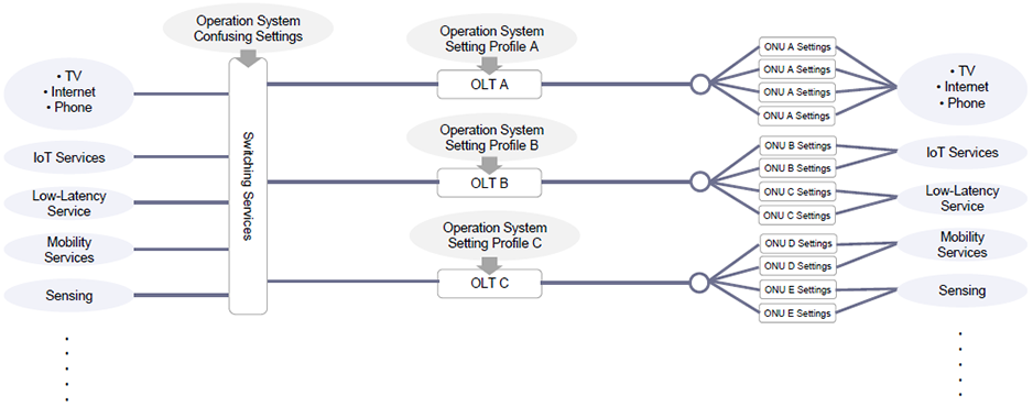 Furukawa Electric Co., Ltd. (Head office: 2-3, Marunouchi 2-chome, Chiyoda-ku; President: Keiichi Kobayashi) is pleased to announce that it has developed SDN (Software Defined Networking) technology that can use software to create a virtual network in EPON(note 1) devices, which are used in fiber access lines for the Internet and other communications. The company is promoting higher-capacity optical fiber access lines toward Society 5.0. By automatically controlling the line status according to how the service is used and dynamically controlling the optimal settings according to communications demand in the OLTs (Optical Line Terminals) on the telecommunications company side, this technology will serve as an important element in the sophistication of future network operation and optical access infrastructure.