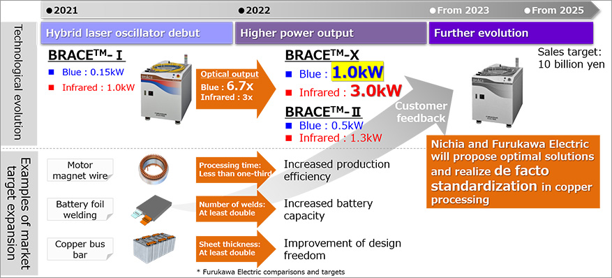 In co-creation in laser processing technology, Nichia and Furukawa Electric will open a dedicated application laboratory at Nichia’s Yokohama Research Center in June 2021 and will introduce Furukawa Electric’s BRACE™-I hybrid laser (Figure 3, (note 2)).