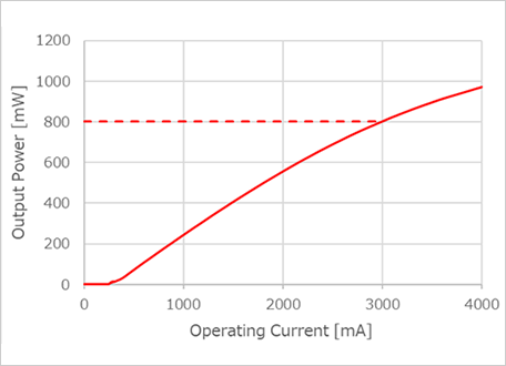 - Achieved 800mW output at a low power consumption of approximately 16W with a pump laser for C-band Raman amplifiers