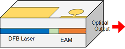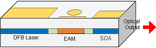 - By integrating a semiconductor optical amplifier (SOA) into the EML, achieved high optical output power of 50 Gbaud, double the current output