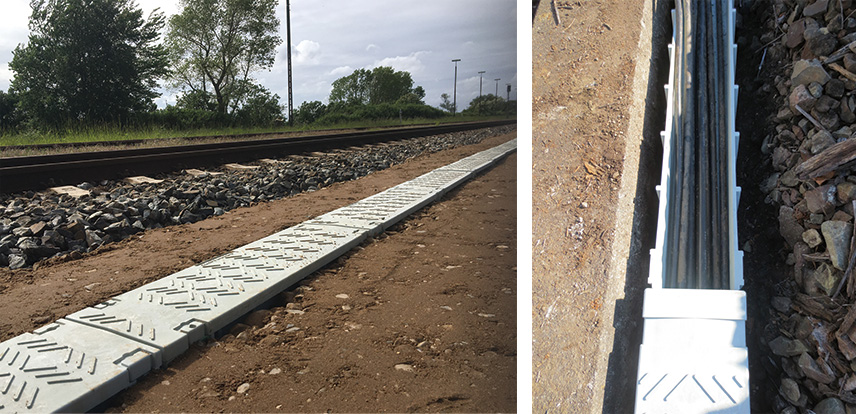 Green Trough is an environmentally friendly product made primarily from recycled polymer. It possesses excellent weather, corrosion and fire resistance, and its lightweight nature contributes to reduced installation time and increased safety. Use of Green Trough is advancing not only in Japan, but also in countries around the world. It is increasingly being used in railroad markets in the UK, Germany and Denmark.