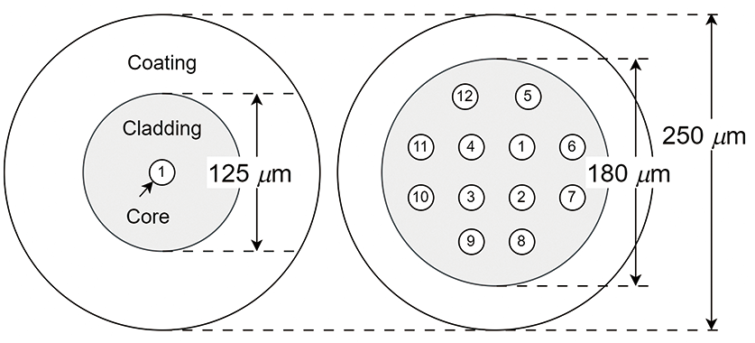 (note 2)Multi-core optical fiber with standard coating diameter that can use existing optical cables.