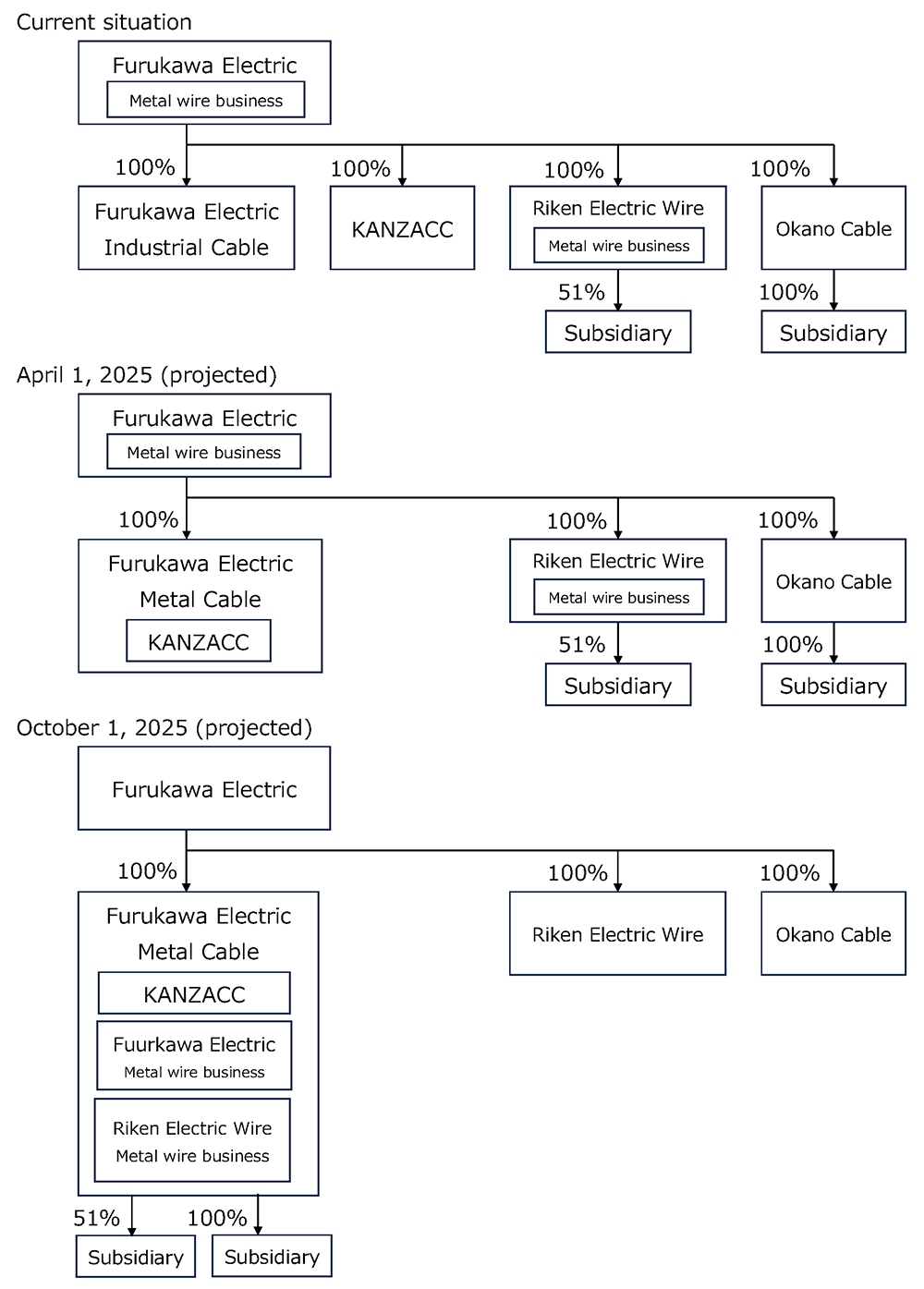 Effective on October 1, 2025 (projected), through an absorption-type company split where the Company is the splitting company and Furukawa Electric Metal Cable is the successor company, the successor company will succeed to the business related to development, manufacturing and sales of metal wires in the Company’s Optical Fiber and Cable Products business division. Effective on the same day, through an absorption-type company split where Riken Electric Wire and Okano Cable, our wholly-owned subsidiaries, are the splitting companies and Furukawa Electric Metal Cable is the successor company, the successor company will succeed to Riken Electric Wire’s metal wire business, as well as shares of subsidiaries of Riken Electric Wire and Okano Cable, which operate metal wire business, held by these splitting companies respectively. For more details, please see below.