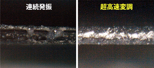 - 超高速変調ファイバレーザにより、金属箔および活物質層への熱影響部を大幅に低減し、端面の金属ダマの付着および金属箔の表面露出を低減可能です。