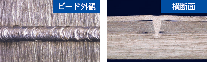 - 融点の低さからブローホール(溶接部内部の空隙)が発生しやすいとされるアルミの重ね溶接においても、ビームプロファイル制御との組み合わせにより安定した溶接が可能となります。