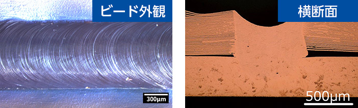 - 青色レーザの銅に対する高い光吸収率を利用し、安定した入熱制御が可能となります。