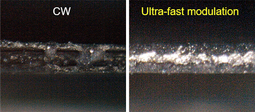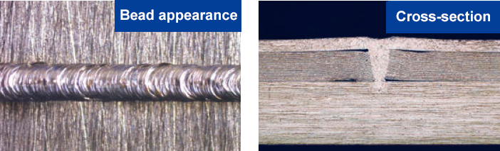 - Even for the lap welding of aluminum, which is considered prone to blowholes (cavities inside welded sections) due to its low melting point, stable welding is possible in combination with beam profile control.