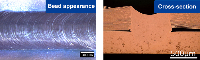 - Stable heat input control is realized using the high optical absorption rate of blue laser for copper.