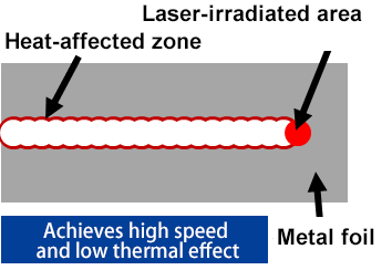 - Realizes processing which achieves both high speed and low thermal effect for metal foil cutting.