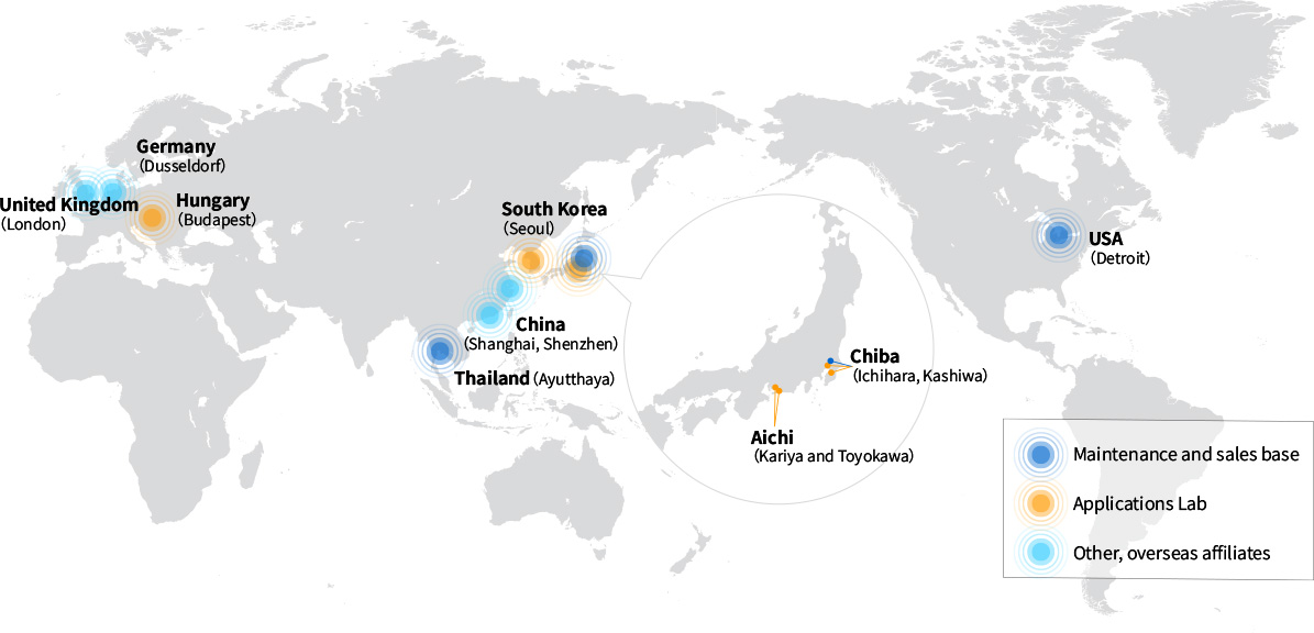 We have established customer support centers in Japan (Chiba), Thailand (Ayutthaya), and North America (Detroit) in order to build a support system that will satisfy our customers. In addition to on-site support from each location, telephone support is also available during nighttime hours to provide various maintenance services so that customers can use lasers with peace of mind.