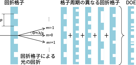 回折光学素子(DOE)はこの原理を利用してレーザ光を分岐しています。