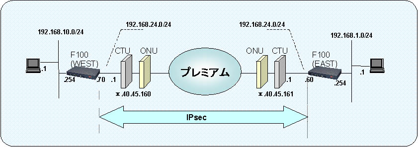 | ネットワーク機器トップ > 製品ラインナップ > FITELnet-Fシリーズ > FITELnet-F100・1000 > 設定例 > フレッツプレミアム回線上でのIPsec(Main modeでのSA確立) |