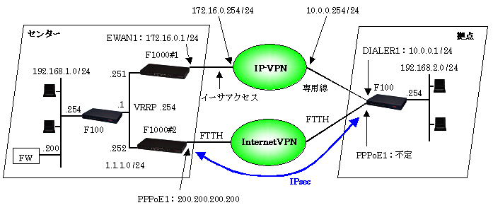 | ネットワーク機器トップ > 製品ラインナップ > FITELnet-Fシリーズ > FITELnet-F100・1000 > 設定例 > 専用線をインターネットVPNでバックアップする(2) |