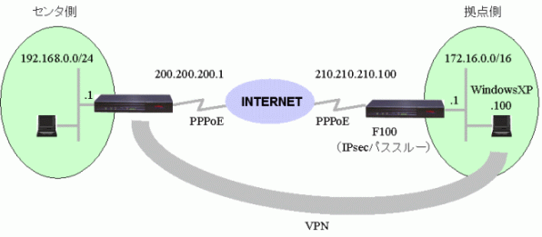 | IPsecの対象とする中継パケット | 192.168.1.0/24 ⇔ 172.16.0.100 |