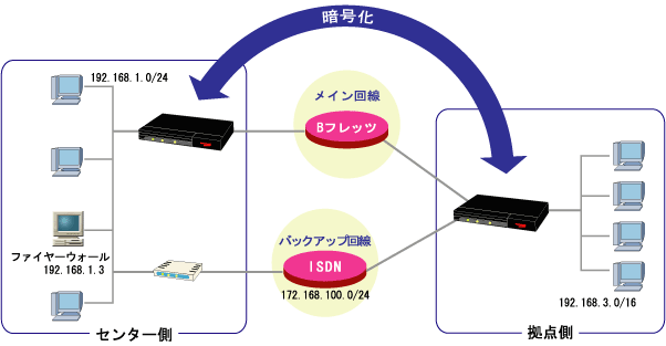 | 拠点側ISDNインタフェースのIPアドレス | 192.168.100.3 |