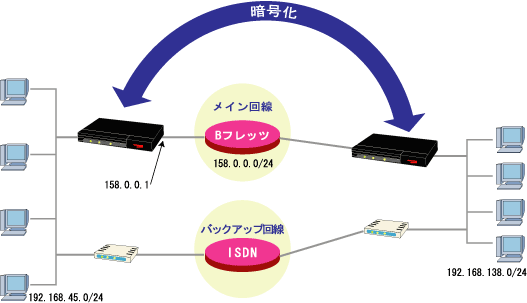 | 2.F100+E30で冗長、メイン回線のみ暗号化 |