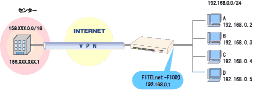 FITELnet-F1000はVPNの中の、ネットワーク層の暗号化/認証に特化したIPsec(IP Security)をサポートしており、専用線を用いなくても、安価にセキュリティの高いネットワークを構築できます。