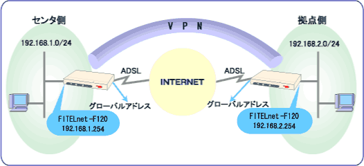 | 設定例 > FITELnet-F120対向でIPsec通信をする(1) |