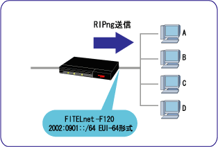 RIPng動作ネットワーク RIPngサービス設定モード network RIPng動作ネットワーク 2002:0901::/64ネットワーク