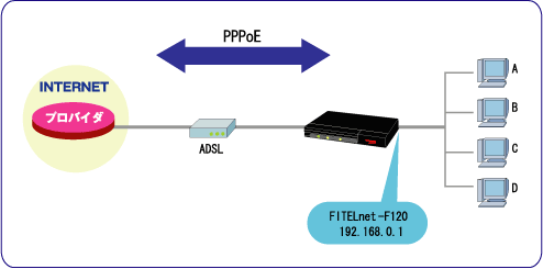 | PPPoEインタフェース | PPPoEインタフェース設定モード | pppoe server | 接続相手名称 | A-Provider | わかりやすい名称 |