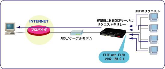 IPv4/IPv6の双方で簡易DNS機能(FITELnet-F120を擬似的にDNSサーバとして使用する機能)を使用するケースを考えます。