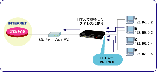 LAN側にローカルアドレスを割り当てている場合、そのままのアドレスでは公共のネットワーク(インターネット等)に接続することはできません。