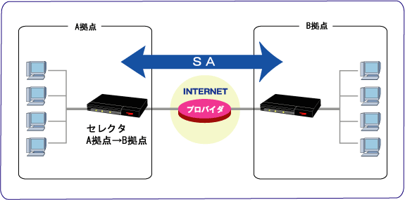 図のような形態において、SAが確立した場合にB拠点への経路情報をルーティングテーブルに登録します。