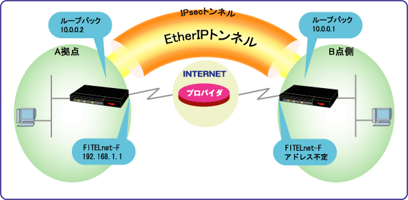 不定アドレス環境で、IPsecトンネルの中にEtherIPトンネルを通し使用する。