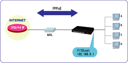 | PPPoEインタフェース | PPPoEインタフェース設定モード | pppoe server | 接続相手名称 | A-Provider | わかりやすい名称 |