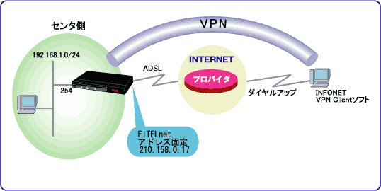 | 設定例 > FITELnet-F140とVPNクライアントソフトでIPsec通信をする |