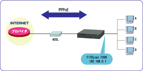 | PPPoEインタフェース | PPPoEインタフェース設定モード | pppoe server | 接続相手名称 | A-Provider | わかりやすい名称 |