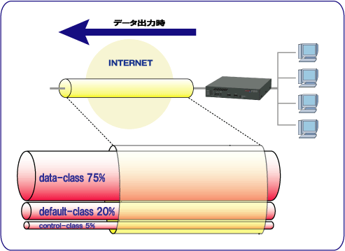 data-class 優先させたいパケットに割り当てる帯域を設定します。