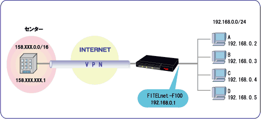 FITELnet F2000はVPNの中の、ネットワーク層の暗号化/認証に特化したIPsec(IP Security)をサポートしており、専用線を用いなくても、安価にセキュリティの高いネットワークを構築できます。