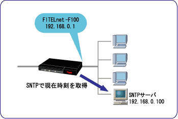 FITELnet-Fシリーズは、外部のSNTPサーバから現在時刻を取得することができます。SNTPサーバとしては動作しません。