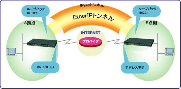不定アドレス環境で、IPsecトンネルの中にEtherIPトンネルを通し使用する。