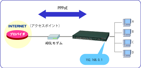 | PPPoEインタフェース | PPPoEインタフェース設定モード | pppoe server | 接続相手名称 | A-Provider | わかりやすい名称 |
