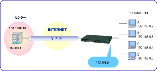 | VPNセレクタの設定 | 基本設定モード | ipsec access-list | VPNセレクタの登録 | 192.168.0.0/24 → 158.0.0.0/16 のデータはIPsec |