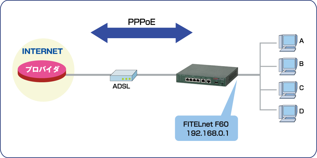 | PPPoEインタフェース | PPPoEインタフェース設定モード | pppoe server | 接続相手名称 | A-Provider | わかりやすい名称 |