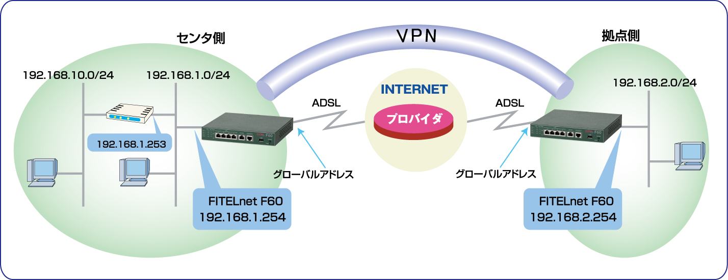 | 設定例 > FITELnet F60対向でIPsec通信をする |