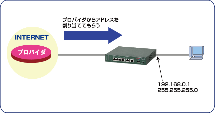 NAT+を使用する  NAT変換範囲(LAN側) access-list 変換前のアドレス範囲 192.168.0.0