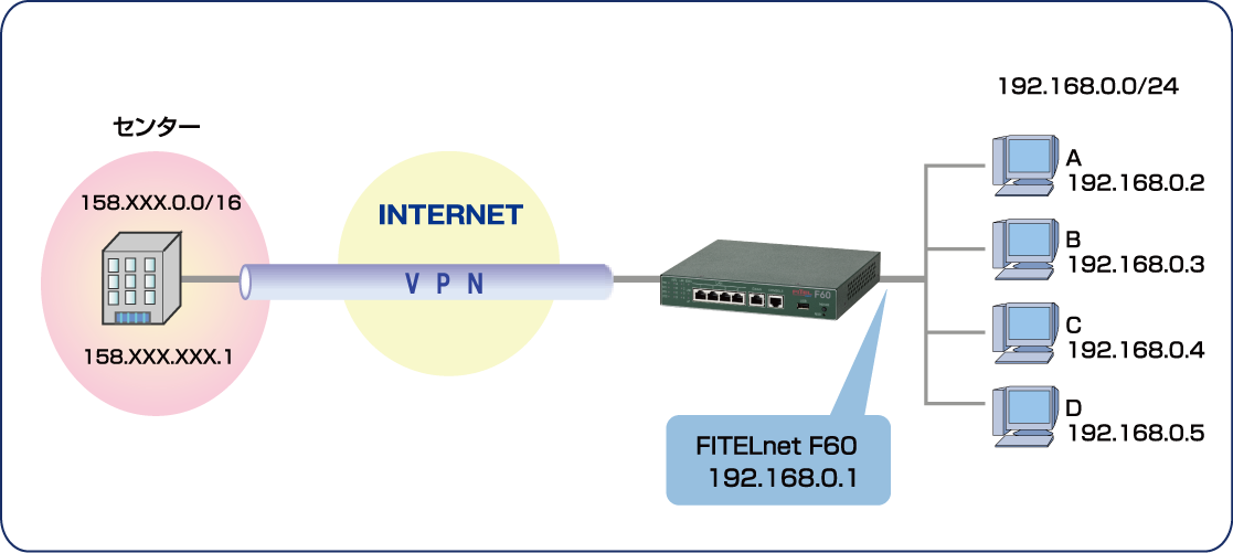 | VPNセレクタの設定 | 基本設定モード | ipsec access-list | VPNセレクタの登録 | 192.168.0.0/24 → 158.0.0.0/16 のデータはIPsec |