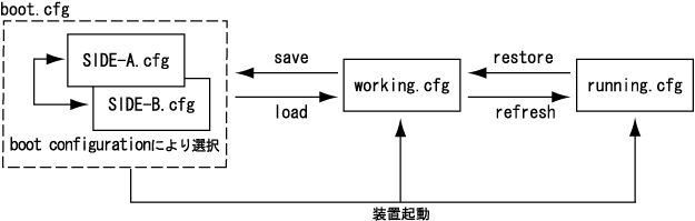 running.cfg 現在動作中の設定情報 working.cfg 編集中の設定情報 boot.cfg 次回起動時の設定情報